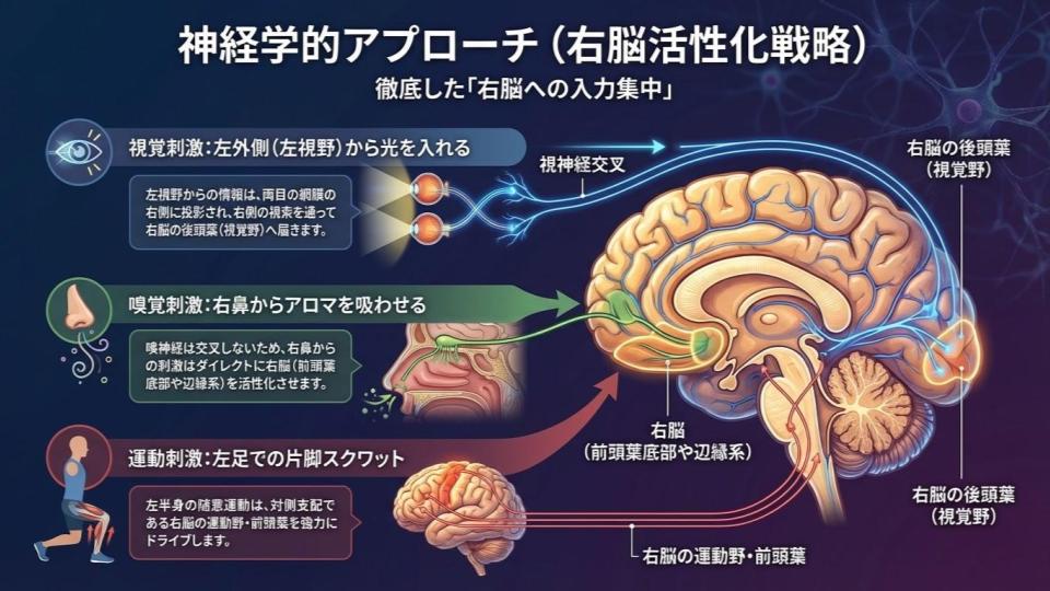 今回の施術:神経学的アプローチ(右脳活性化戦略)